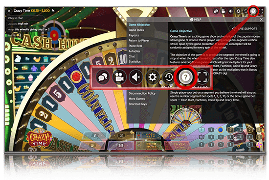 Para leer las Reglas del juego de cada juego, haga clic en el icono de ayuda mientras juega. Consulta las capturas de pantalla a continuación para ver dónde encontrar el ícono de ayuda según el proveedor de casino en vivo.